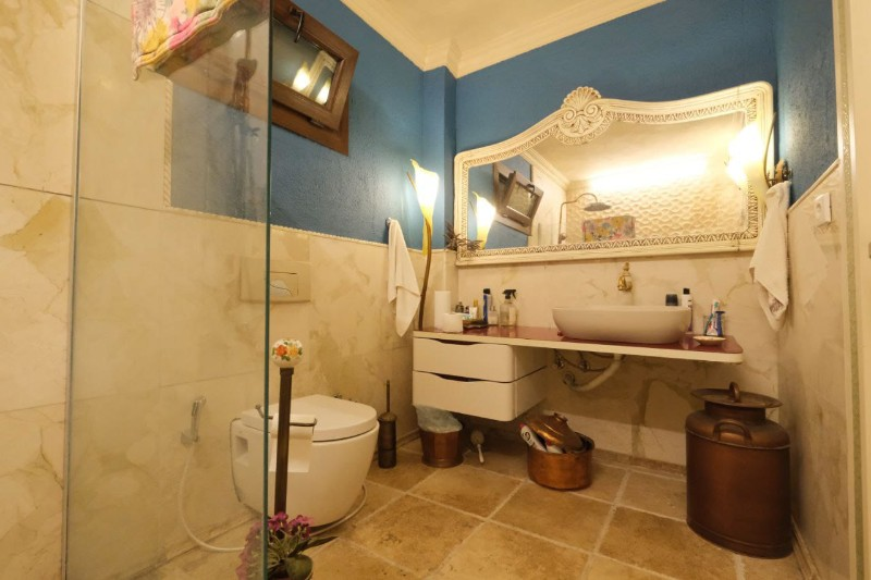 tuvalet ,iki adet yatak odası ve ahşap kış bahçesine sahiptir.