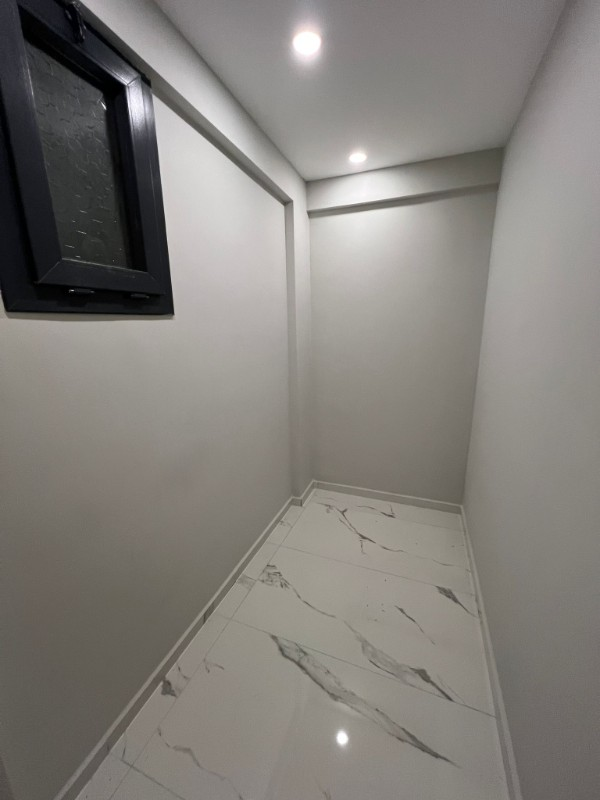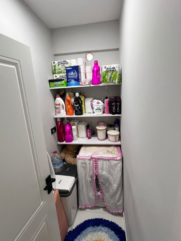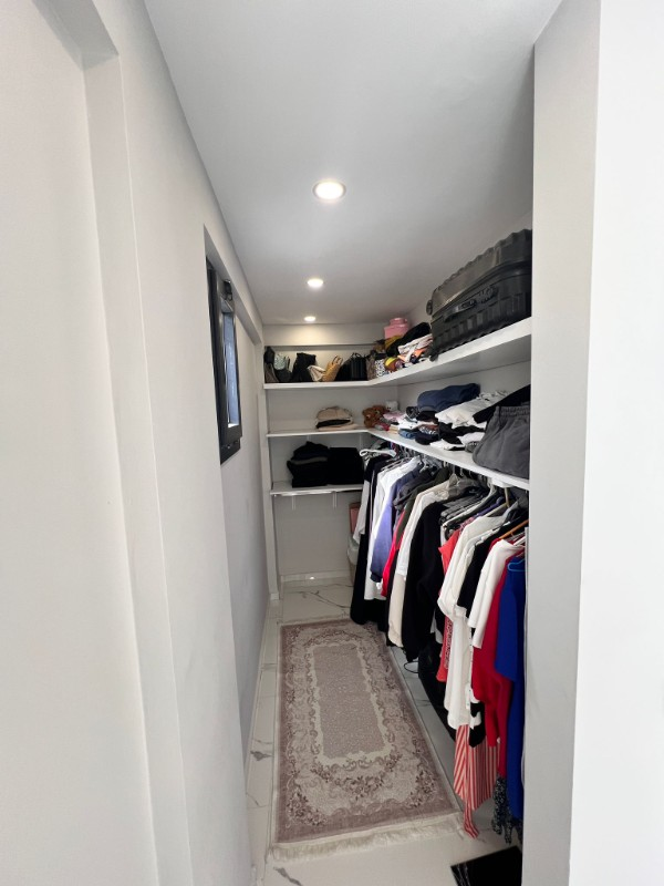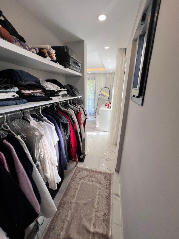 evde geniş bir giyinme odası ve pratik kullanım sağlayan çamaşır odası
