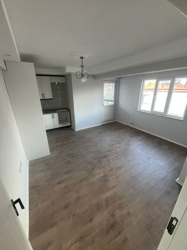 Dairemiz açık plan mutfak salon, iki yatak odası, bir