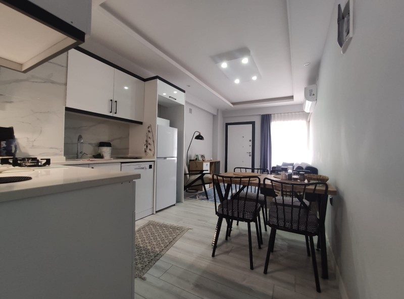 Dairemiz açık plan mutfak salon, bir yatak odası, bir